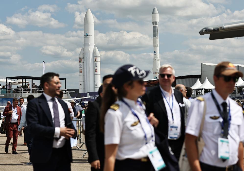 6月17日,人们在法国巴黎近郊布尔歇机场举行的第55届巴黎航展上参观。