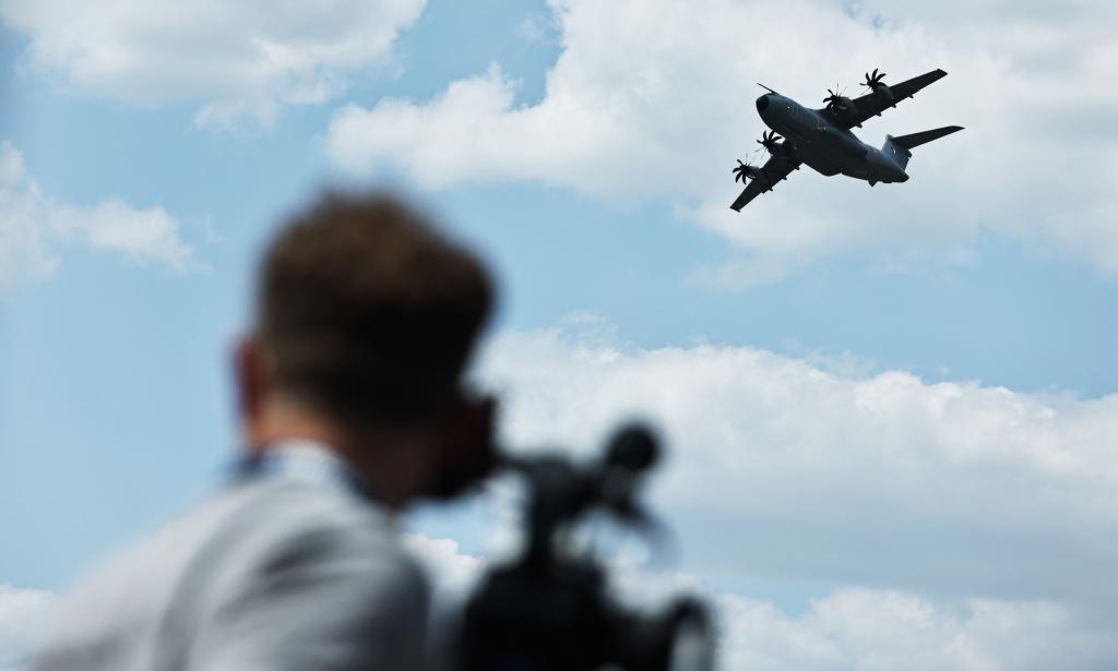 6月17日,在法国巴黎近郊布尔歇机场举行的第55届巴黎航展上,A400M运输机进行飞行表演。