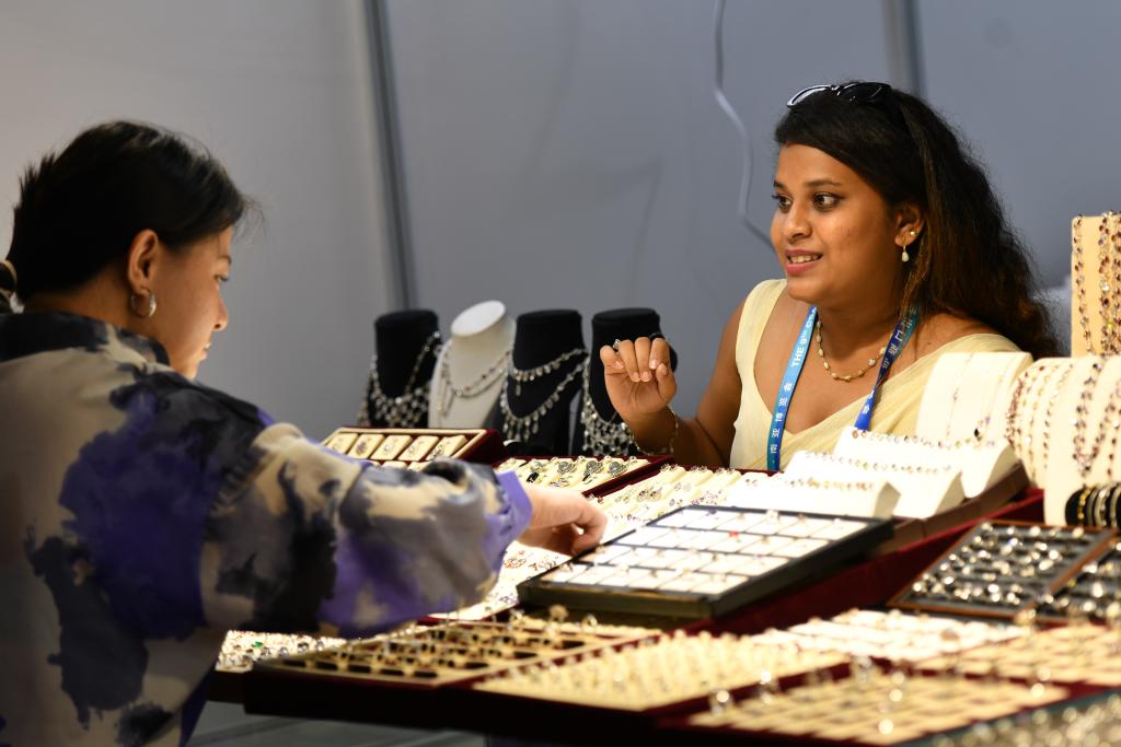 来自尼泊尔的批发商摩尼的展位前聚集了体验“颂钵”的参观者。“这是我第7次参加南博会。第一次带来的‘颂钵’3天售罄的场景还历历在目。如今,这里已是我们展示文化、开拓市场不可或缺的窗口。”摩尼感慨道。
