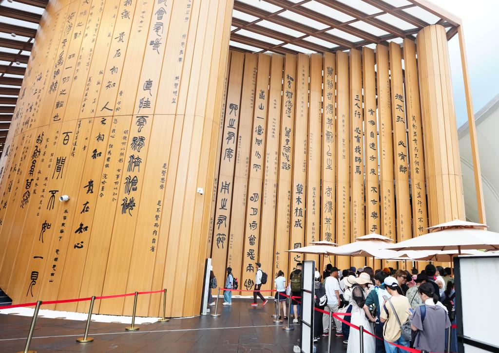 7月11日,游客在日本大阪世博会中国国家馆内参观。