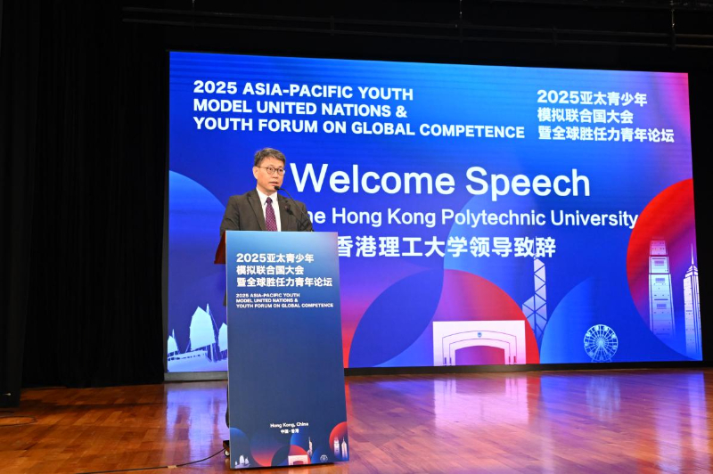 香港理工大学副校长(研究及创新)赵汝恒出席开幕式并致辞,他表示,香港理工大学矢志培育心系家国、肩承世界的领袖人才,致力引导学生知行合一、回馈社会,这与模拟联合国的精神紧密相连。青年是驱动文明进步、破解全球性挑战的关键力量。他鼓励青少年代表在活动中,秉持“科技向善”的创新思维,锻造未来核心素养,淬炼全球胜任力,在驾驭技术变革的同时守护人类文明根基,将科技创新与人文关怀融合,实现“不让任何人掉队”的可持续未来。