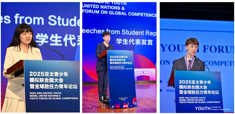 来自宁夏银川一中的冉妍、新加坡国际学校(香港)的顾骏珀以及北京外国语大学留学生Vlasovskiy Artem作为参会代表发言,分享了他们对全球治理与可持续发展的思考,表达了对本次活动的期待。