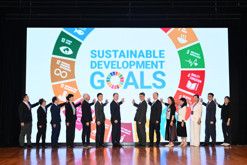 随后,贾文键、赵汝恒等主承办及协办单位代表共同点亮象征可持续发展目标(SDGs)的大屏幕,标志着本次盛会正式启动。