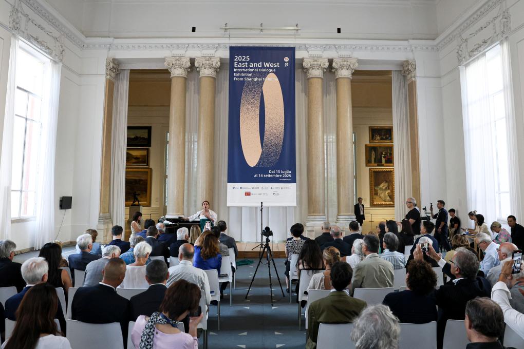 这是7月14日在意大利首都罗马拍摄的“2025无问西东国际对话展:从上海到罗马”开幕式现场。