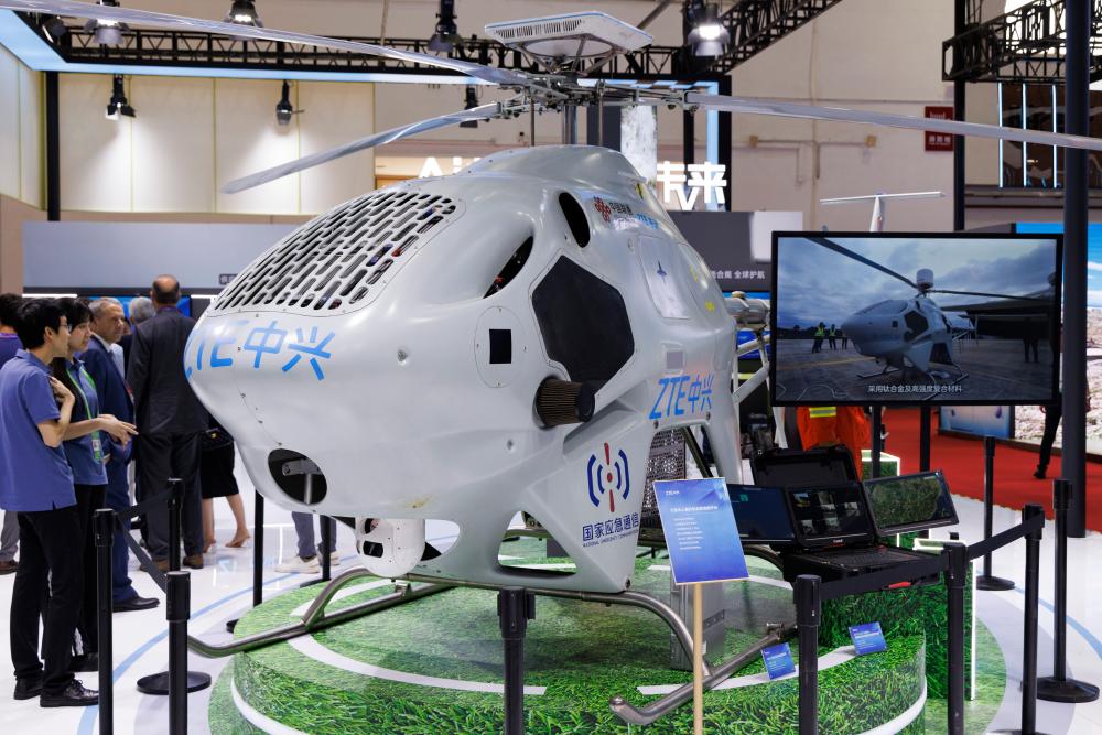 7月16日在数字科技链展区拍摄的大型无人直升机应急救援平台。