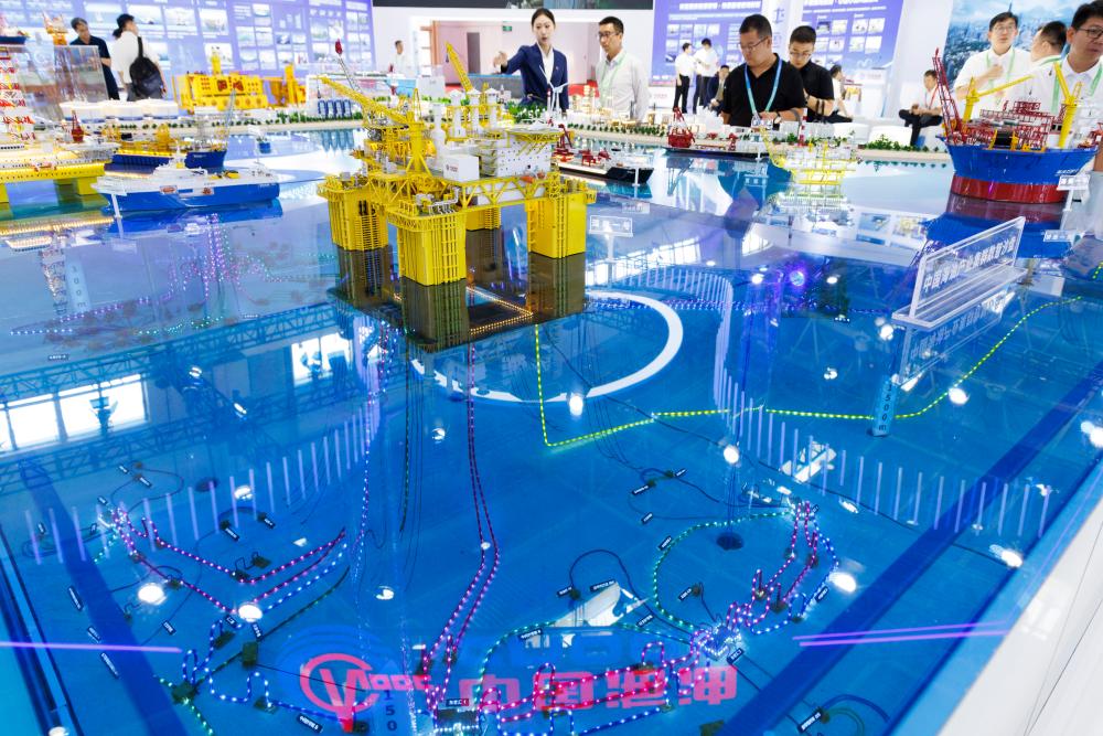 7月16日在清洁能源链展区拍摄的中国海油产业集群数智沙盘。