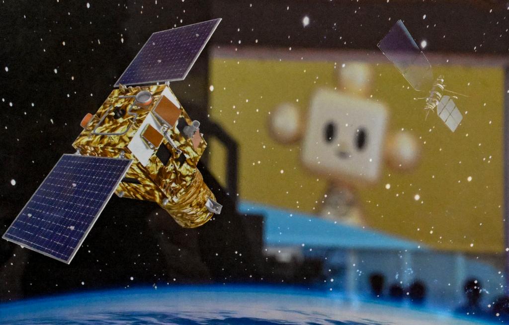 7月16日,在先进制造链展区山东嘉航电子信息技术有限公司展位,产品图片与反射的链博会吉祥物“链氪”相映成趣。