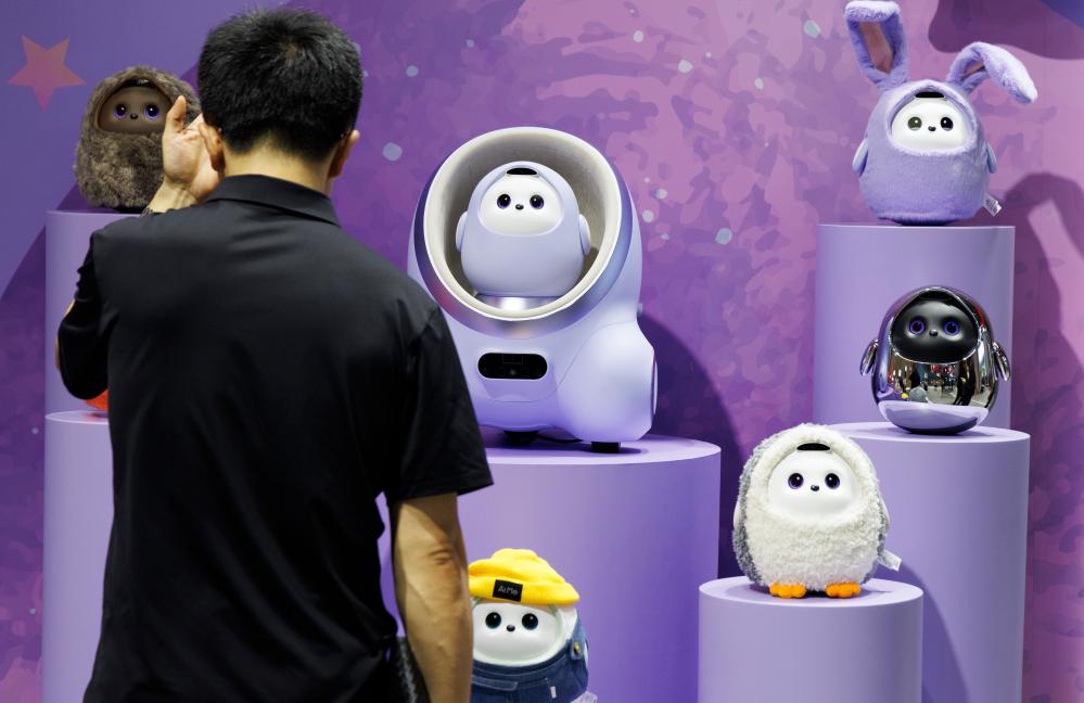 7月16日在数字科技链展区拍摄的分体式陪伴机器人。