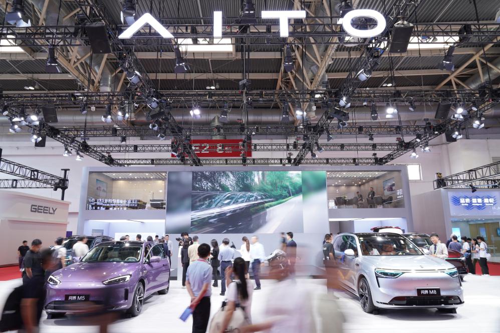 这是7月16日拍摄的问界汽车展台。