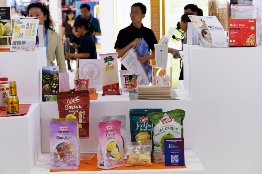 7月17日,参观者在第三届中国国际供应链促进博览会主宾国泰国展台了解来自泰国的商品。