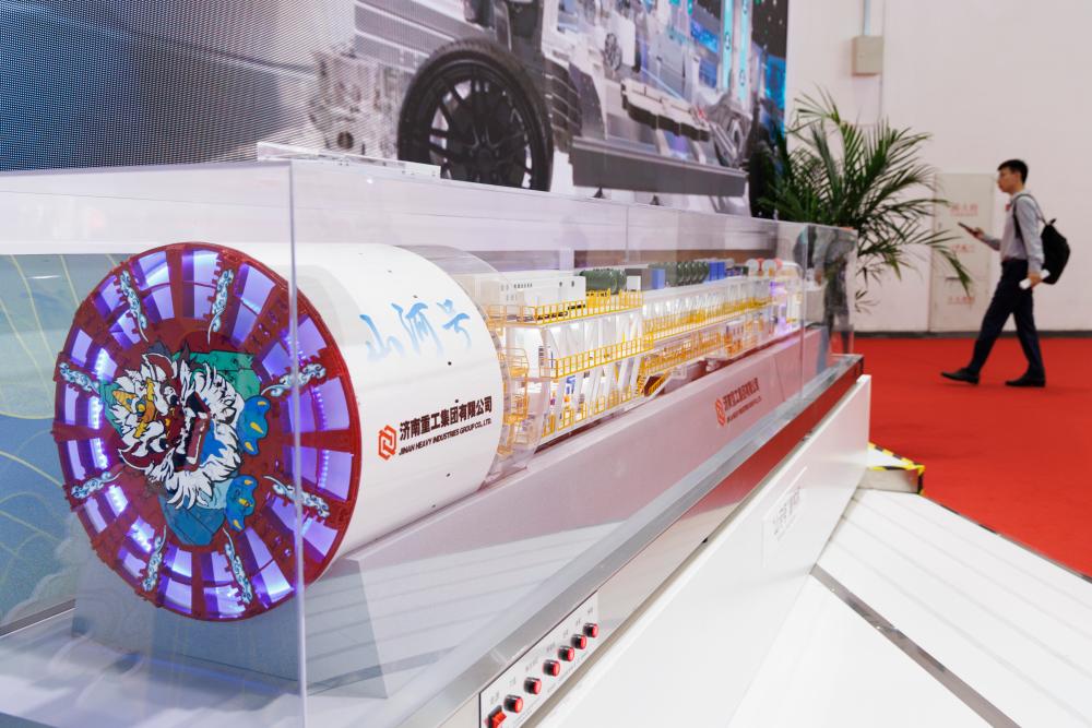 7月17日在第三届中国国际供应链促进博览会主宾省山东省展台拍摄的“山河号”盾构机。