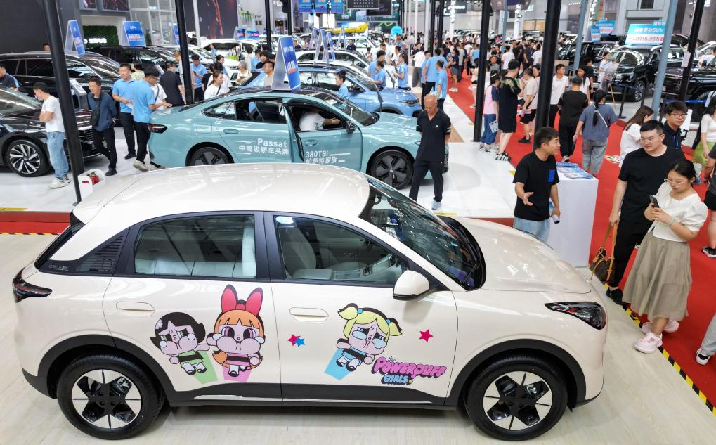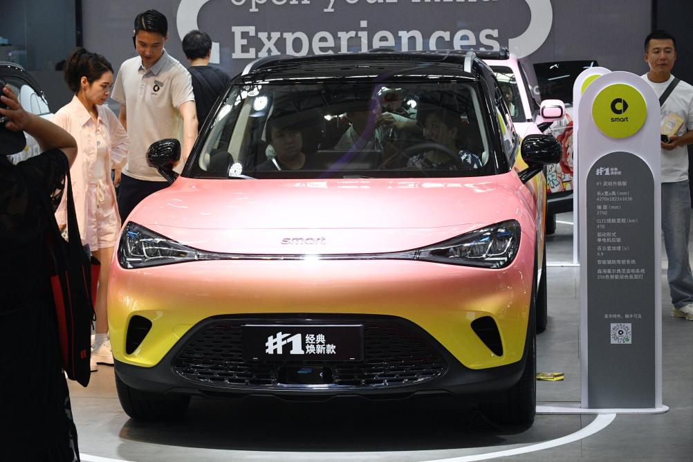 8月5日,参会者在2025第二十七届哈尔滨国际车展现场了解展示车辆。