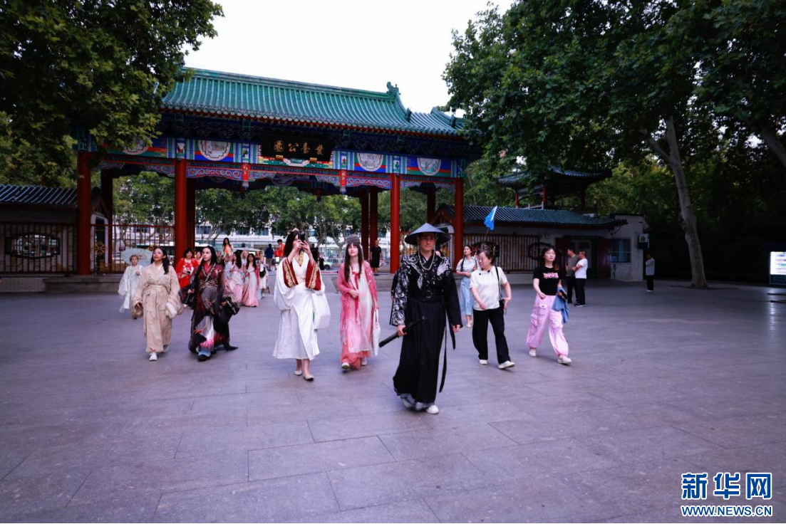8月28日,来自美国、比利时、俄罗斯、墨西哥等国的15名青少年来到邯郸,参加由中外语言交流合作中心主办的2025“汉语桥”中文+影视配音主题夏令营活动。图为夏令营选手参观丛台公园。马令怡摄
