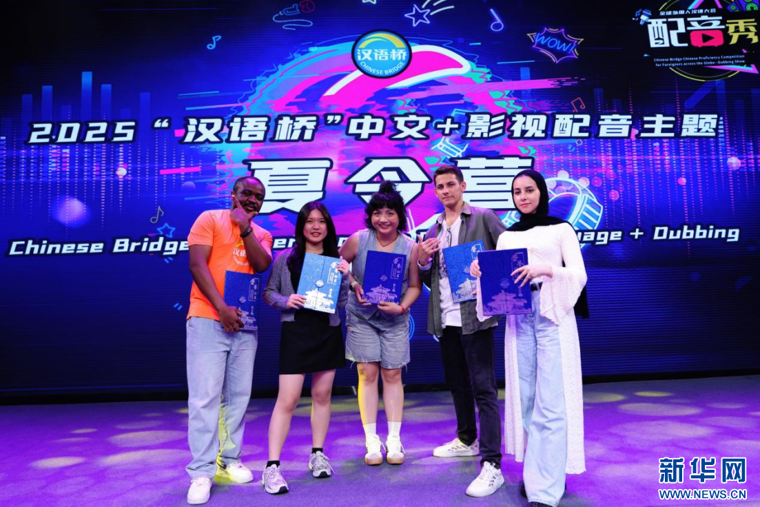 8月28日,来自美国、比利时、俄罗斯、墨西哥等国的15名青少年来到邯郸,参加由中外语言交流合作中心主办的2025“汉语桥”中文+影视配音主题夏令营活动。图为开营仪式上埃及选手孟婷语配音《芈月传》。马令怡摄