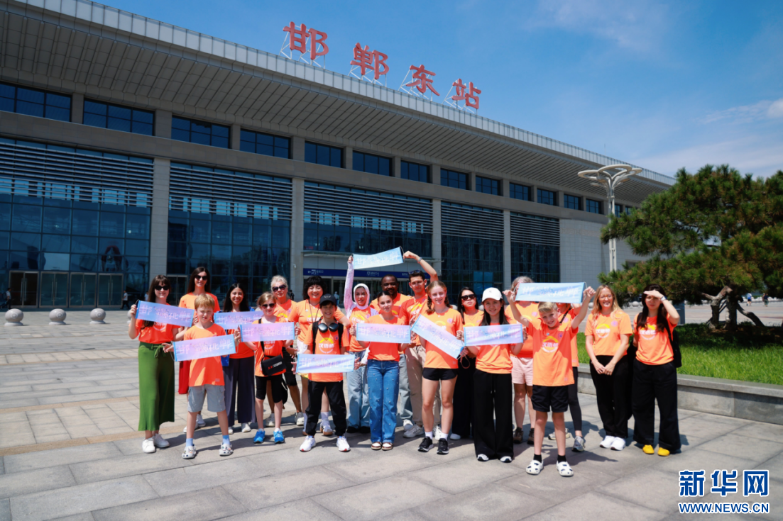 8月28日,来自美国、比利时、俄罗斯、墨西哥等国的15名青少年来到邯郸,参加由中外语言交流合作中心主办的2025“汉语桥”中文+影视配音主题夏令营活动。图为夏令营选手及家长在邯郸东站合影。马令怡摄