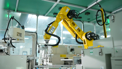 图为中兴通讯西安研发中心生产线