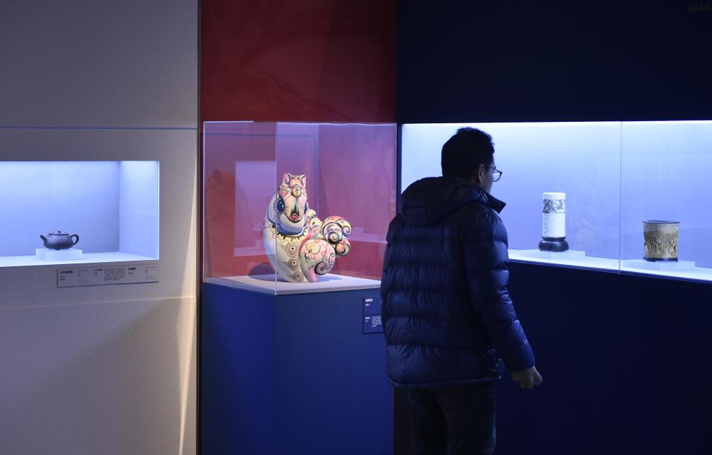 2月9日,嘉宾在中国美术馆参观展出的工艺美术作品。