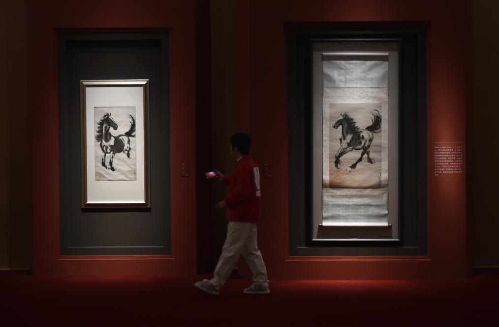 2月9日,嘉宾在中国美术馆参观展出的徐悲鸿作品《奔马》。