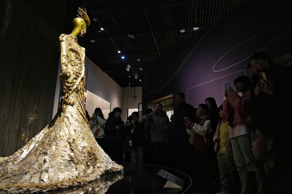 2月17日,观众在成都博物馆参观“金线——从北非到东亚的黄金服饰风尚”特展。