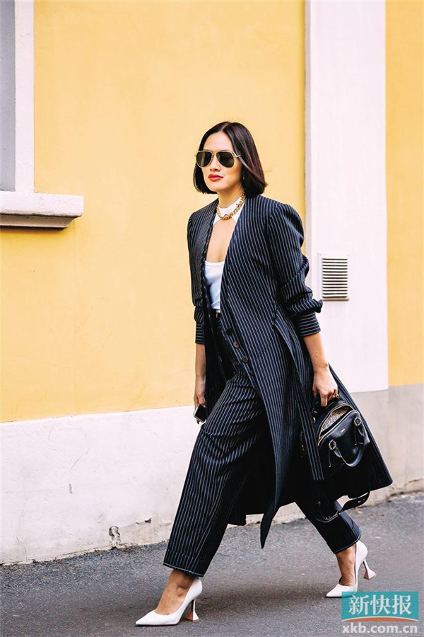 机智的时髦精还可以用短款套装来打造腹部挖空的视觉感,同样精致又时髦。