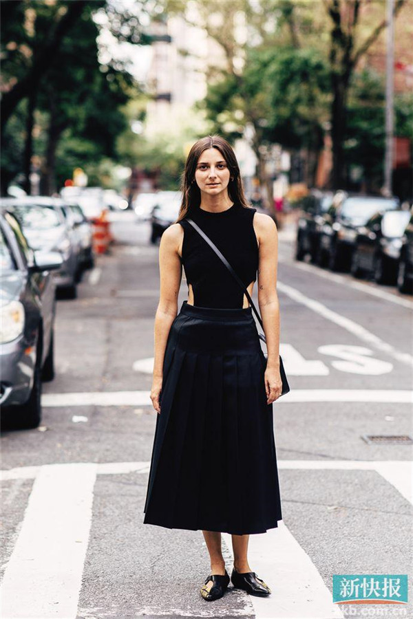 腹部挖洞比腰部挖洞穿着门槛更低,开洞位置恰好在胸以下肚脐以上,能很好地抬高腰线,实力显腿长。