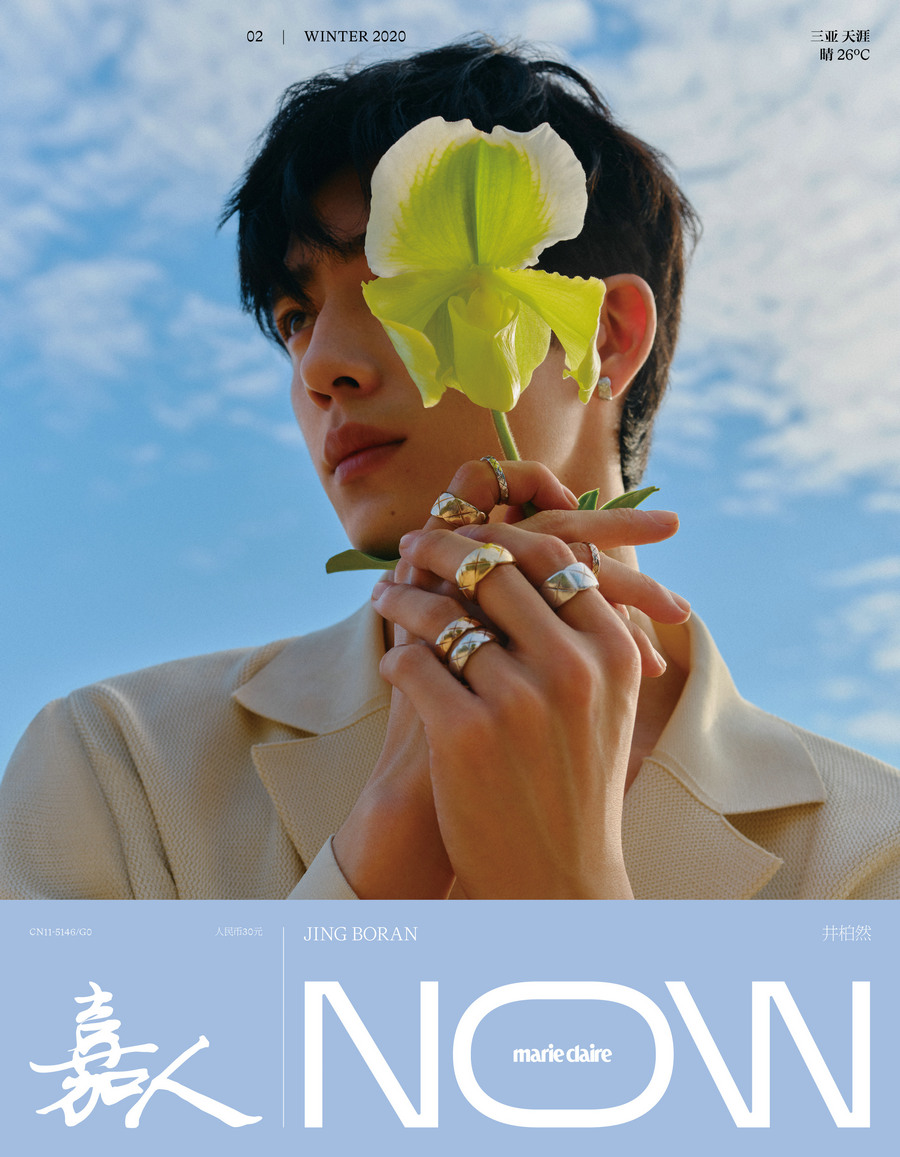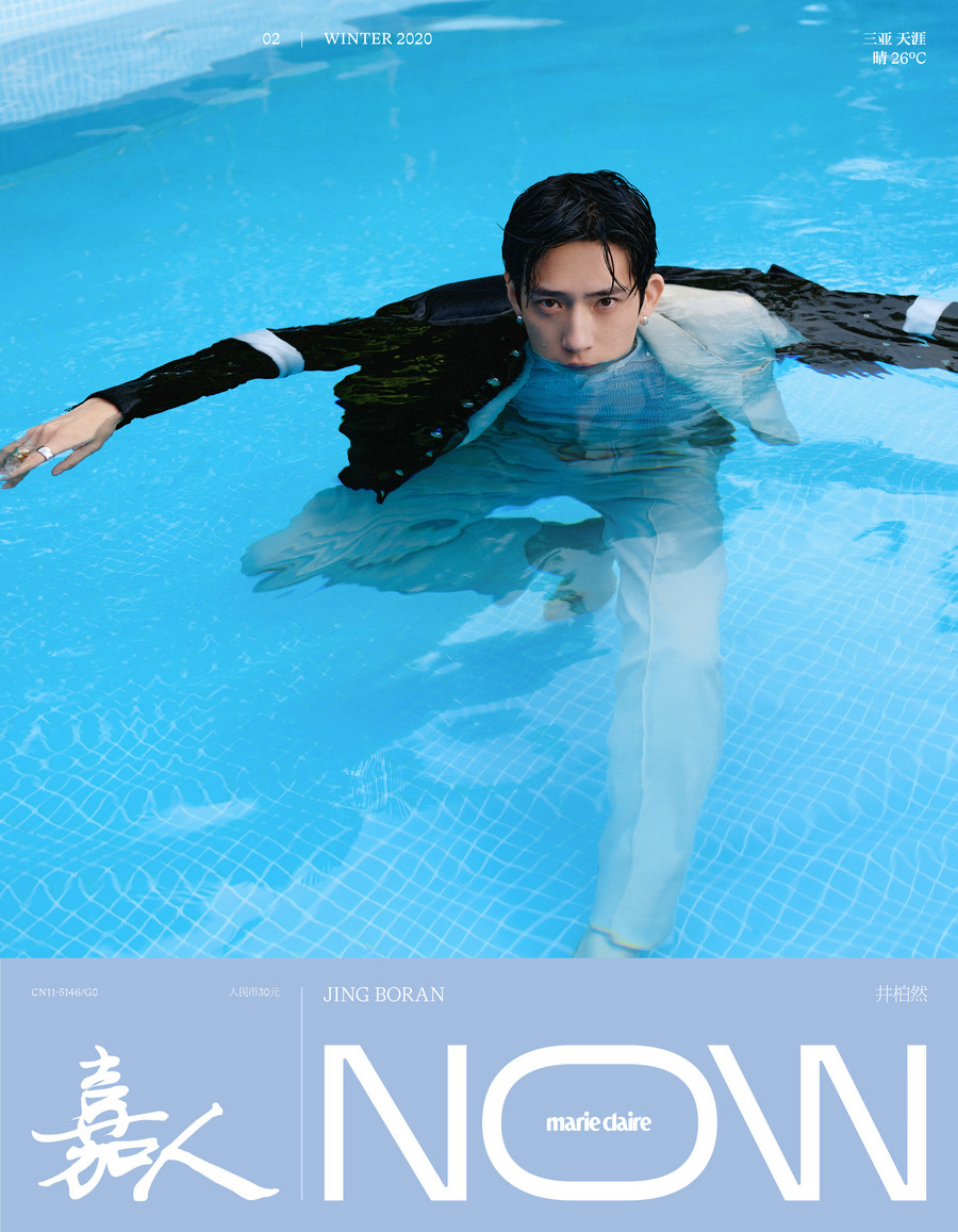 近日,井柏然一组冬日海滩大片曝光。叠穿黑白双色外套,搭配白色休闲裤置身清澈水池;手持黄白花蕊,眼神干净站立在蓝天之下。以此登上《嘉人now》2020年闭年刊双封面。