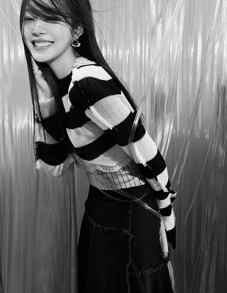 在第二本杂志大片中,宋轶则以干净利落的长发搭配连衣裙、黑白条纹上衣等,举手投足间展现优雅气质。帘幕之下,宋轶时而忧郁内敛,时而绽放笑容,长发飘散,姿态优雅,呈现出敏锐的镜头感与强大的情绪表现力。