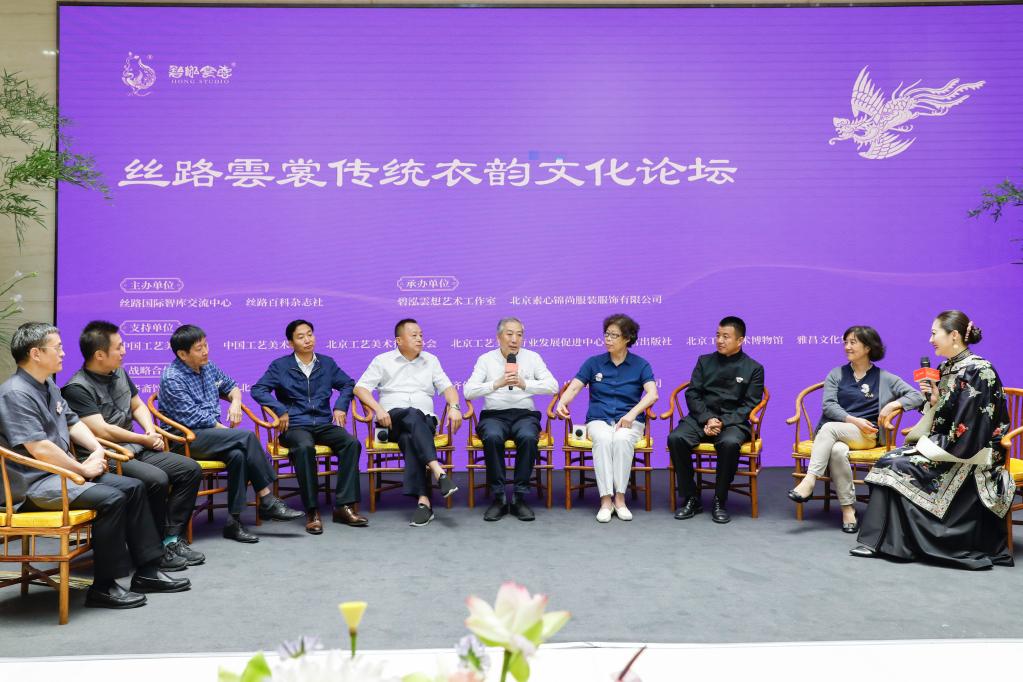 在丝路云裳传统衣韵文化论坛上,毕红一身古典美衣,向现场嘉宾分享了她从事清代宫廷服装收藏、传承京绣技艺,设计中式服装的心路历程。