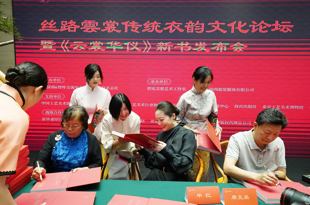 7月13日,著名古典美衣收藏家毕红在发布会现场为读者签名。