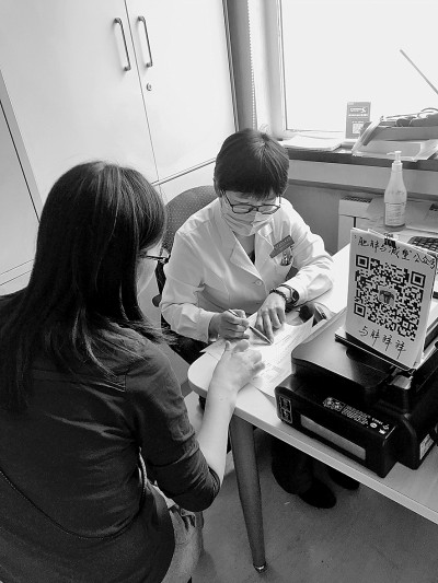 图为周灵丽在给患者讲解检查报告。北京大学人民医院供图