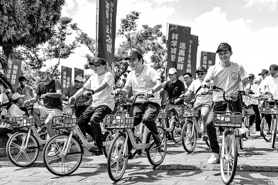 云南省医学会主办“减重·云之南”系列活动,以呼吁公众关注肥胖带来的危害,学习和了解科学防治肥胖的健康生活方式。图为活动参与者在骑单车。新华社发