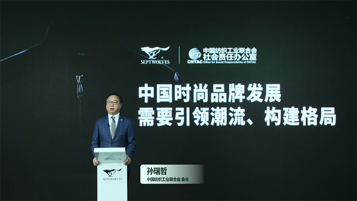 中国纺织工业联合会会长孙瑞哲现场表示,时代发展的机遇、民族复兴的使命,正赋予中国服装品牌以新的历史责任。新一代的中国时尚品牌发展的新潮流、新趋势也必将代表中国风范、引领全球风尚的世界时尚市场。