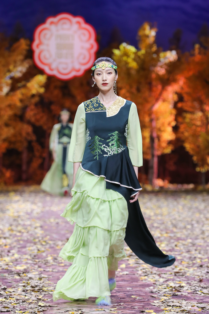 9月5日,一场以传统服饰为源泉的“山河·森语”中国鄂伦春文化服饰秀暨金景怡设计师品牌专场发布会在2021中国国际时装周上演。