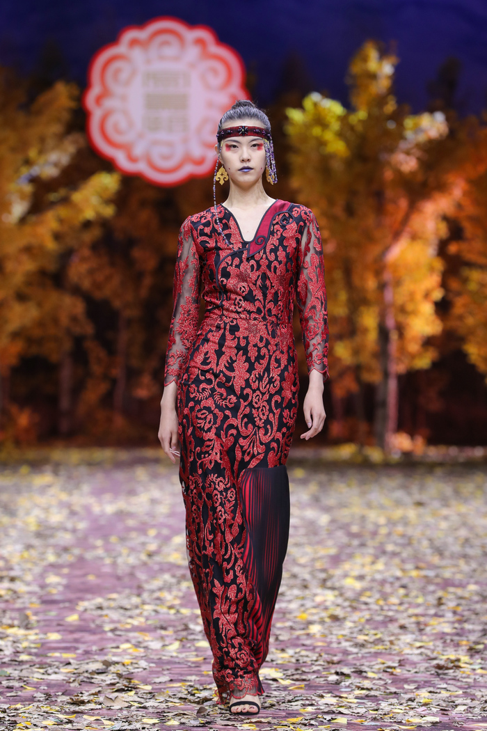 设计师金景怡追溯鄂伦春人从嘎仙洞进入原野山林,再融入文明社会的历史进程,将整场大秀分为三个段落。交织传统服饰与现代时尚碰撞的华彩,艺术化再现人与神灵、人与山林、人与文明的亲昵低语,描绘出一个源于古老传说和神话、神秘且富有想象力、代表东方文明又预示未来的美学世界,尽情挥洒着自由洒脱的艺术创造力和鄂伦春族蓬勃勇毅的原野生命力。