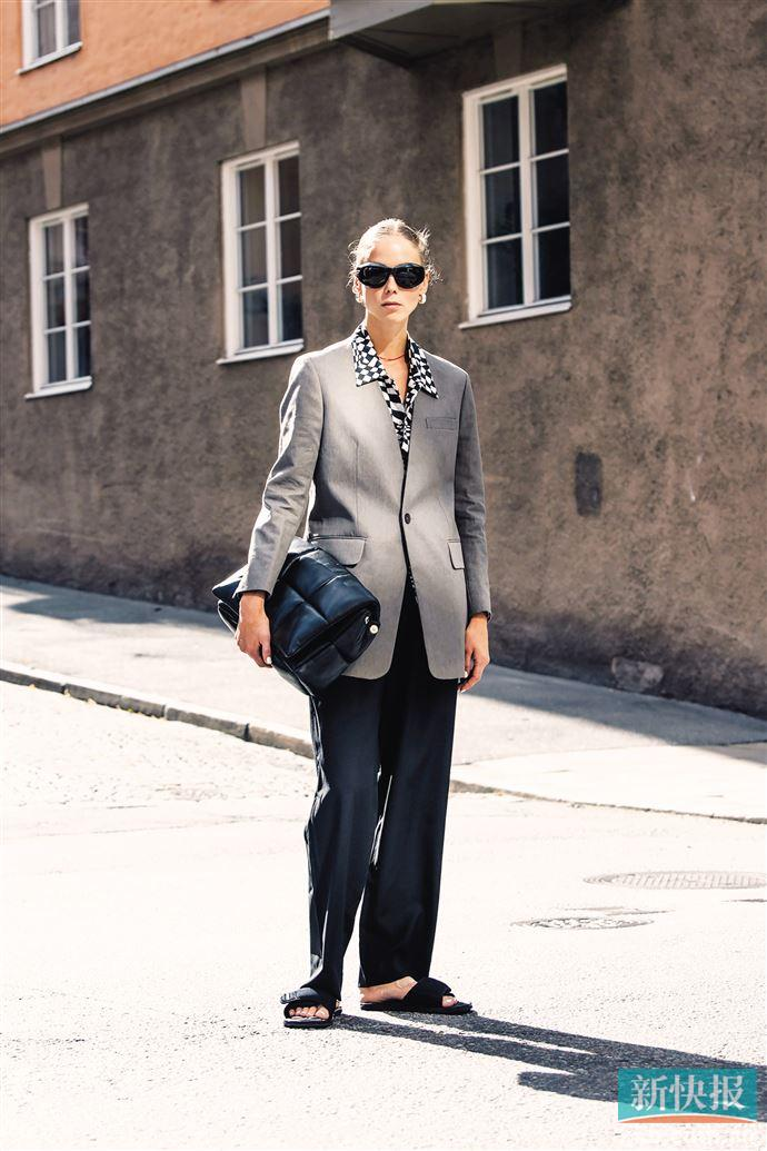 ▲如果还是担心衬衫面积太大不好造型,不妨用“严肃”的西装“压一压”,低调又不失时髦细节。pagebreak
