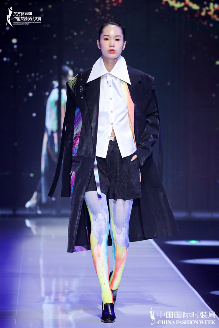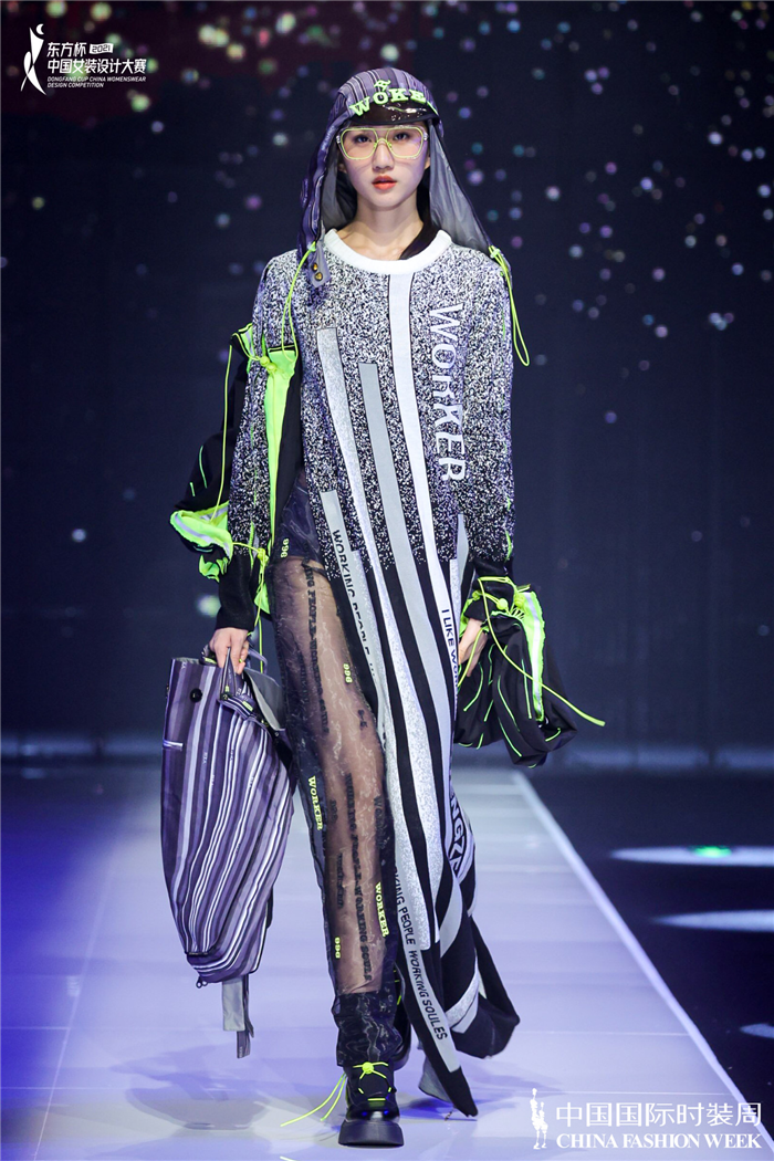 除唐雯婷的作品之外,参与发布秀展演的其他作品同样多角度解读时尚。在服装形式与寓意的揉捏下,设计师们大胆尝试新的设计表现手法,使作品最终得到无限的想象空间与独特的视觉形式感。它们或是阐述着当下潮流更迭;或是传送着可持续时尚的声音;或是描绘着历史风情画卷。每一套造型似乎都铆足了劲,将优雅矜持和自由潮酷的双重气质中和于一体,打造出活脱脱的都市美学范本。