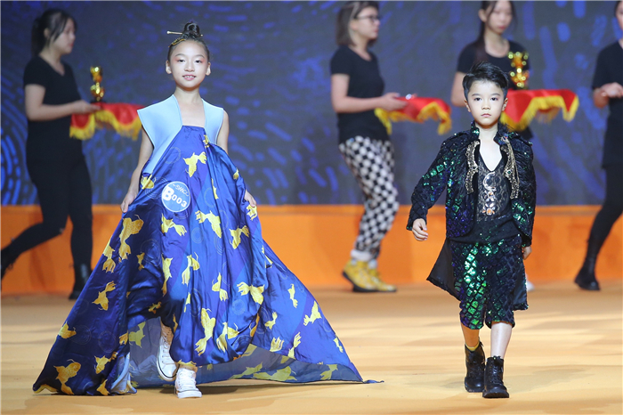 而随着Z世代生活与消费的不断升级,青少年儿童对新逸生活、可持续发展时尚、科技潮流的创造力不断刷新人们的固有认知,为引导发掘青少年儿童的美学生态创新,在“自选服装”比拼环节,小选手们纷纷以最新一代的创意思维,塑造出与众不同的全新时尚造型,展现出来自孩童世界的纯粹与美好。一件件简单的单品,经过解构、混搭、叠穿等改造,成为在舞台上绽放个性时尚的战袍。
