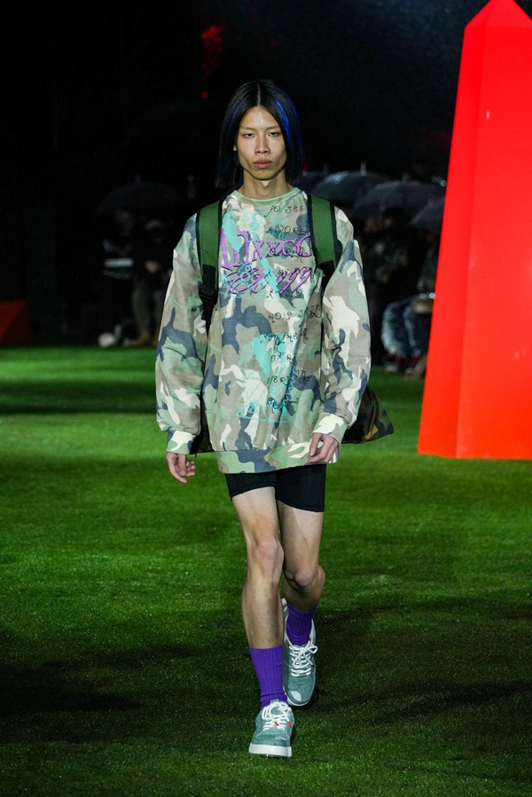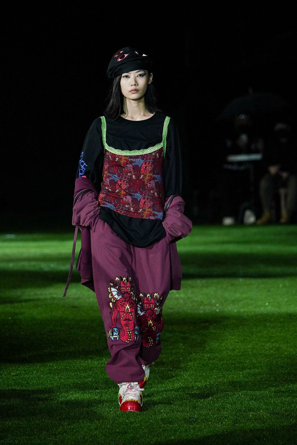 2022 S/S“爻”秀也同步在青城山释出。“爻”代表着阴阳交织的整体作用,从上古伏羲创易时开始就经历着不同的演变;在INXX的视角中,亦可视为交叠的“X”。本季,延续以往对服装结构与廓形的把控;细节上,量感西装与顺滑面料,柔软针织与撕裂设计,无不展现了冲突与融合,塑造多元的潮流力量。另外,此次与西班牙艺术家Ricardo Cavolo 再度合作,将塔罗牌的不确定性与INXX的无限基因相融合,用时装预测未来。