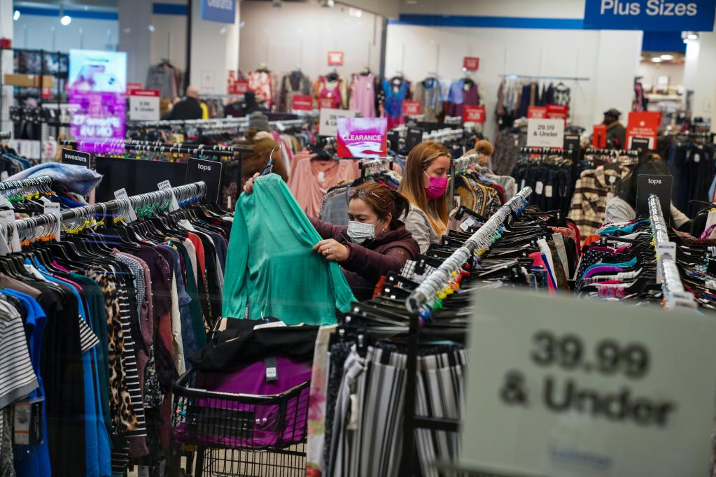 1月12日,顾客在美国纽约一家商店购买服装。(新华社记者王迎摄)