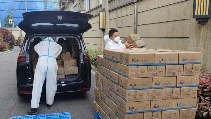 在上海抗疫和生活物资紧张的情况下,公司组织所有因为疫情被隔离在上海家中的员工,在社区内发布社区团购消杀和洗涤物资信息,并发动所有上海运力资源,确保订单48小时内完成火速配送,尽力帮助解决民众物资需求。