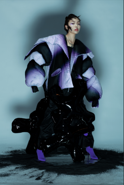 科技创新深刻地改变着人类生活方式,数字化、智能化、多维化是我们对未来时尚产业发展的探索。年轻学子将服饰语言与新科技、新面料结合,聚焦“人与环境”共生的设计语境,探索人类在数字环境中的多重身份表达,同时通过CLO 3D数字虚拟技术拓展了时尚视觉和沉浸的边界,构建出以虚化实,以实载虚的数字时尚设计。