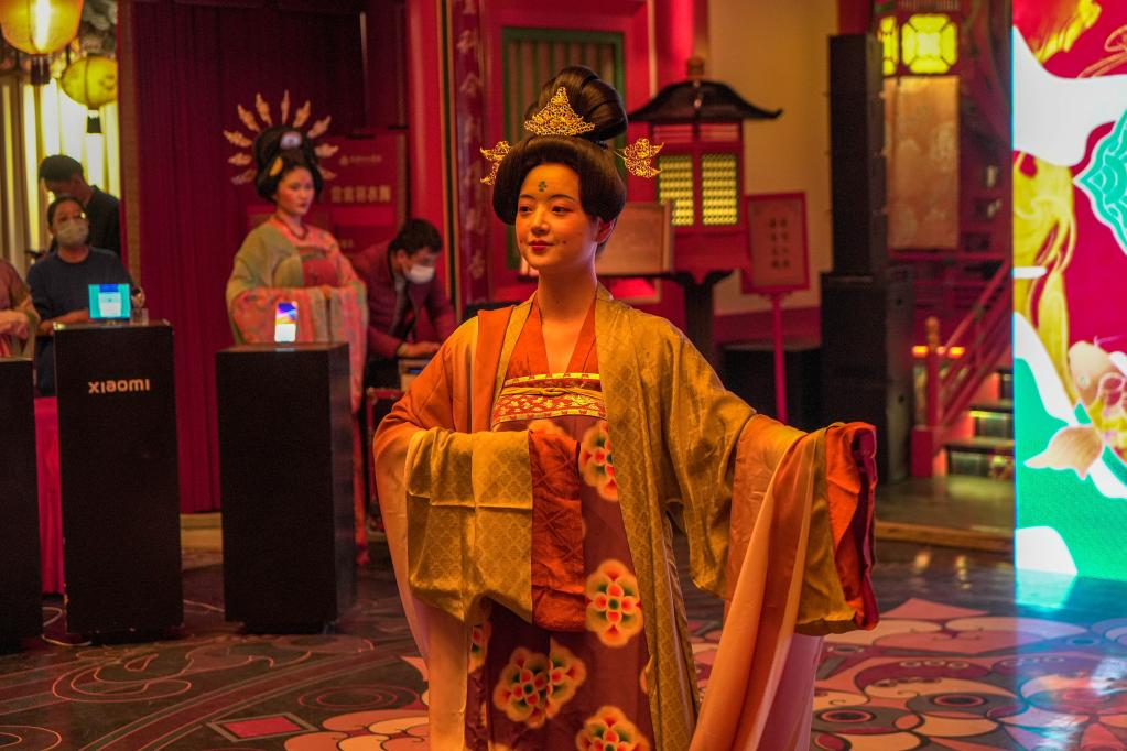 唐朝装束走秀展示唐朝服饰文化。(图片由长安十二时辰主题街区提供)