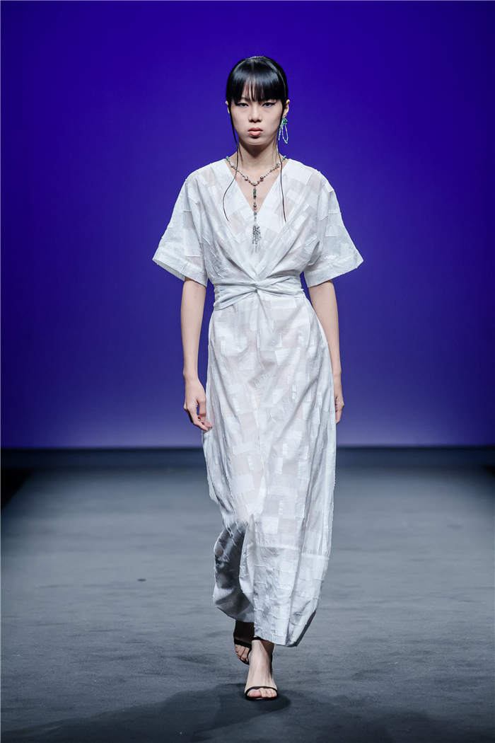 秀场上,蓝染品牌一半又蓝的创始人兼设计师陈杨,设计师品牌Jill Chiu创始人兼总监焦丽贤,DEMAGEDOT/O23653品牌设计师熊慧颖,非线叙事 FEI|XIN NARRATIVE品牌的创始人刘雅馨,独立设计师品牌斯夏CAIRA主理人兼设计师秦朗,NILDET创始人兼设计总监林晏德,独立设计师品牌ohayouki早安琦、独立设计师品牌孵化平台Geek Wonderland主理人万文琦,HAO'S HOUSE 主理人 & 陕西大剧院服装设计师郝昱铭,YANGXING私人定制工作室主理人兼设计师杨星,EYMOOD品牌设计师、武汉设计工程学院专任教师朱磊,以衣唯人设计师徐嘉,CHENG CHENG主理人程澄,绫致时装BESTSELLER设计师王文晓,FIRESPIKE火钉主理人夏明伟, 津波创意设计 Ttsunami Wall 创始人兼设计师范晓琳,YIDI ZHANG主理人张一迪, YANQINGMA创始人兼设计师,游岛艺术主理人麻燕青,PUNCHLINE主理人、SENSE 执行造型薛鹏辉,XANBER TSUI创始人兼设计总监徐贤鹏, 绍兴墨晗文化设计有限公司设计师、FUMENGKE浮梦客 创始人兼设计师李华梦,江西服装学院教师、Chen. 1988设计师、Dong Yuan |studio品牌主理人王远东,樾徕艺术设计工作室首席设计师鲍怿文用最新设计作品演绎新锐设计师群体的新月初升。