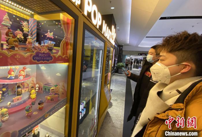 资料图:消费者驻足于盲盒无人售卖机前。 张一辰 摄