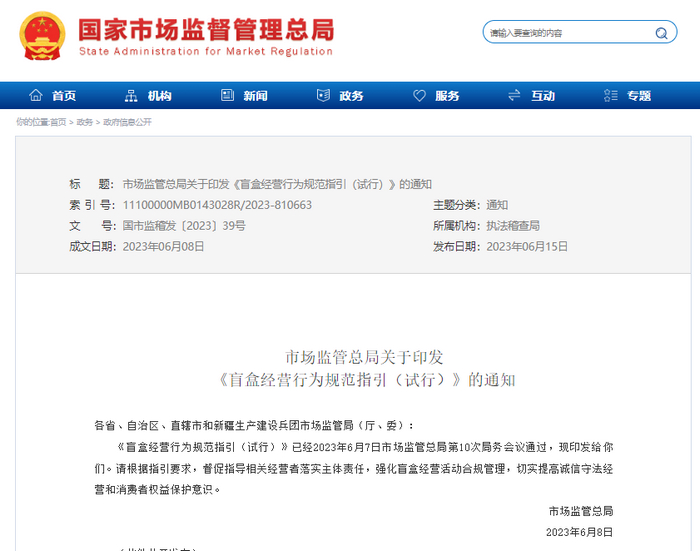 近日,市场监管总局印发《盲盒经营行为规范指引(试行)》(以下简称《指引》),为盲盒经营划出红线。
