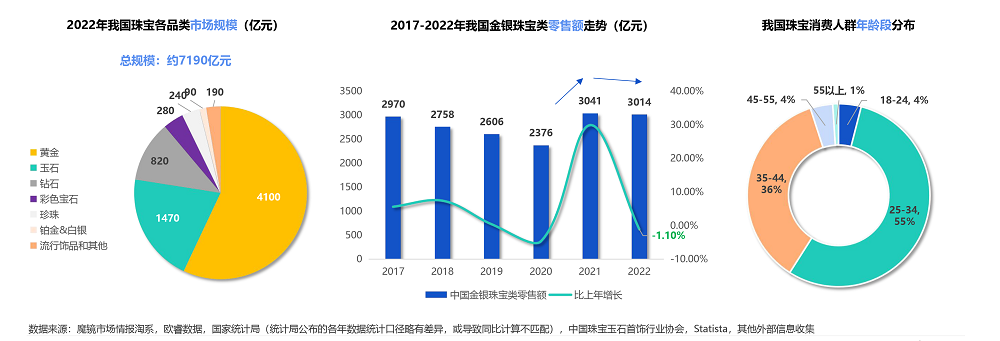 随着我国人口结构的变化和人均可支配收入的提高,25-34岁的群体逐渐成为珠宝首饰的消费主力。
