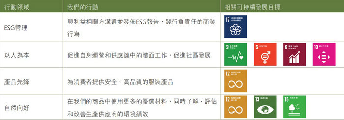 自可持续发展目标提出以来,波司登积极承担社会责任,将可持续发展理念贯彻到企业长期发展战略。波司登主动将各项ESG管理及运营工作与联合国可持续发展目标对标,并聚焦于经济适用的清洁能源、良好健康福祉等八个目标,形成了四个行动板块并制定了具体的行动与业绩指标。