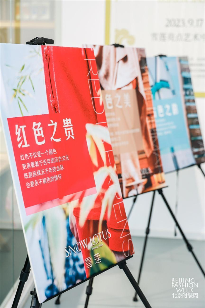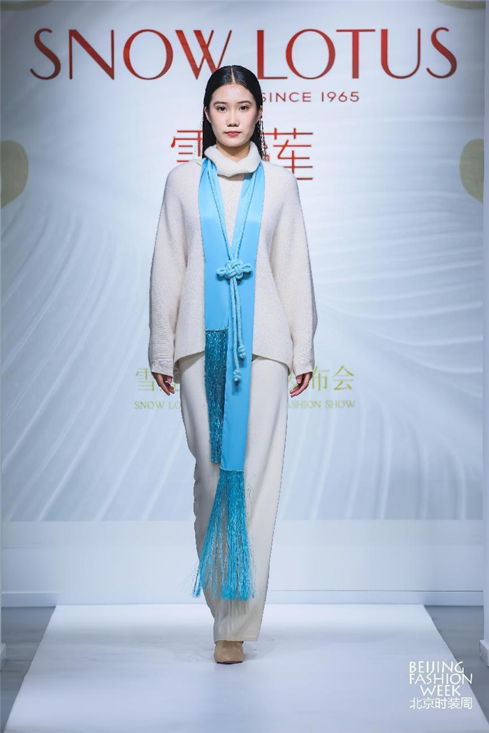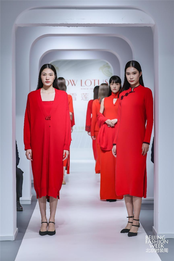 本场发布会共分3大主题系列,分别以代表色命名为“红色之贵”“原色之美”“古色之韵”,雪莲将中国传统色融入羊绒纱线,让东方之韵成为今秋风景。