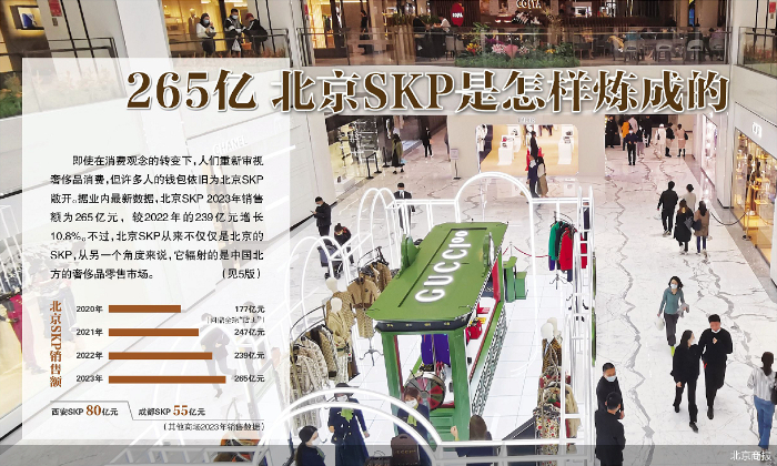 1月4日,时尚商业Daily报道显示,据业内最新数据,北京SKP 2023年销售额为265亿元,较2022年的239亿元增长10.8%;西安SKP销售额达到80亿元,略低于上一年的95亿元;新开业的成都SKP实现55亿元的收入。