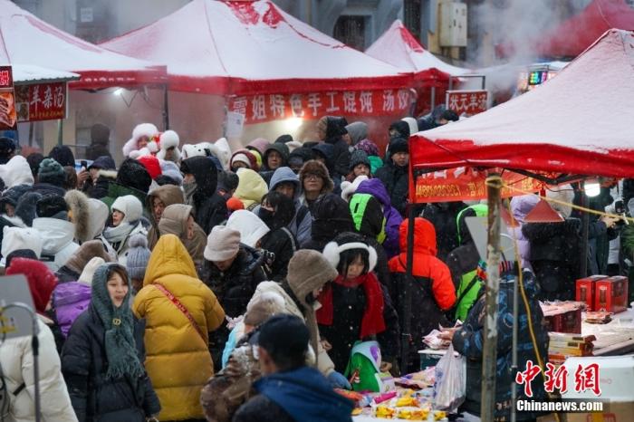 黑龙江哈尔滨,位于红专街的“红专早市”人潮涌动。 中新社发 赵宇航 摄